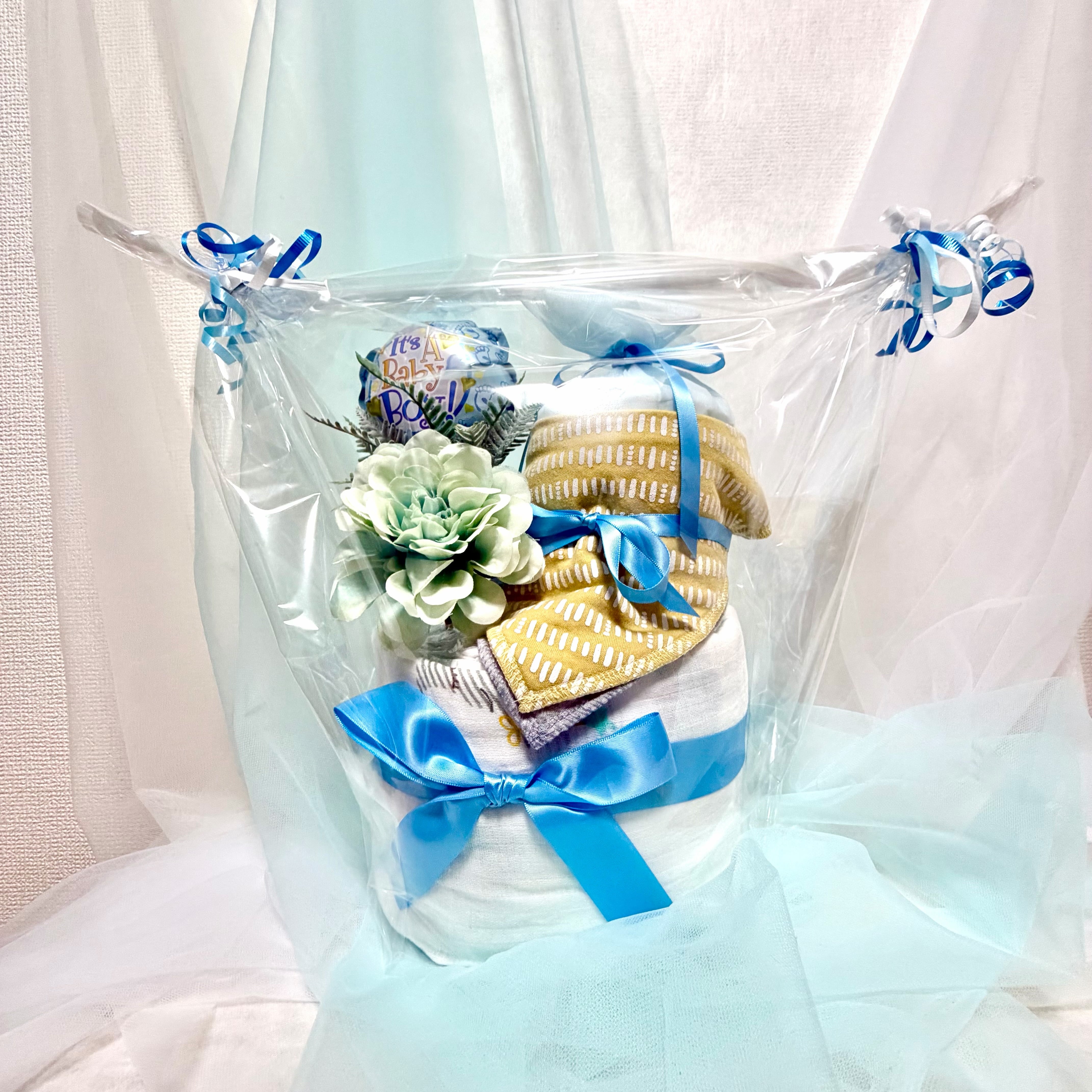 1段目:オムツSサイズ16個、おくるみ(ガーゼ)